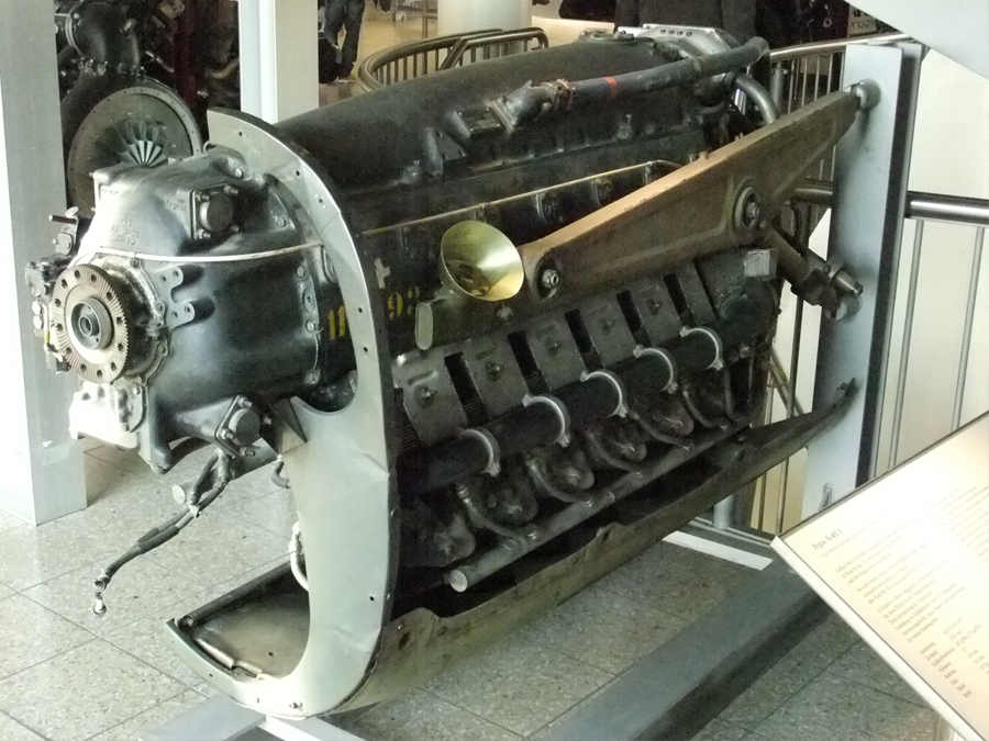 Wassergekühlter 12-Zylinder-V-Motor für Jagd- und Kampfflugzeuge. Erste Serienausführung einer langen