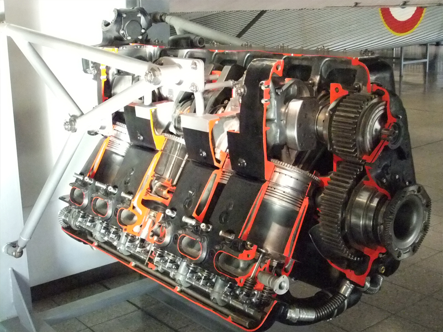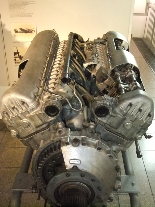 Flüssigkeitsgekühlter 12-Zylinder-Hochleistungsflugmotor. Spitzenprodukt des deutschen Flugmotorenbaus