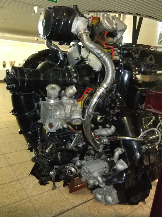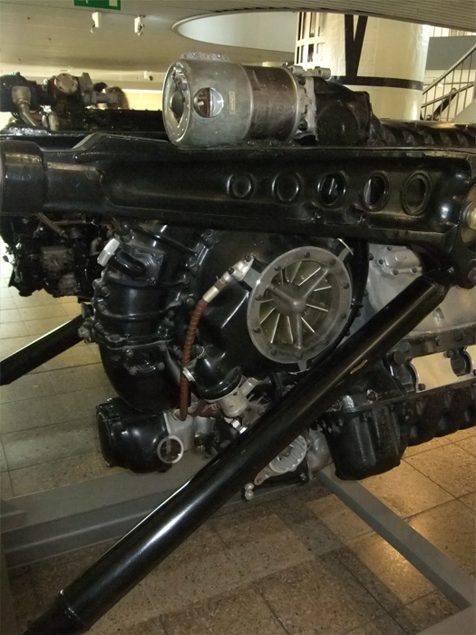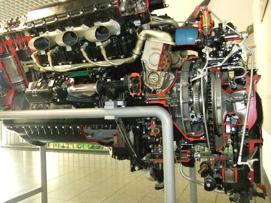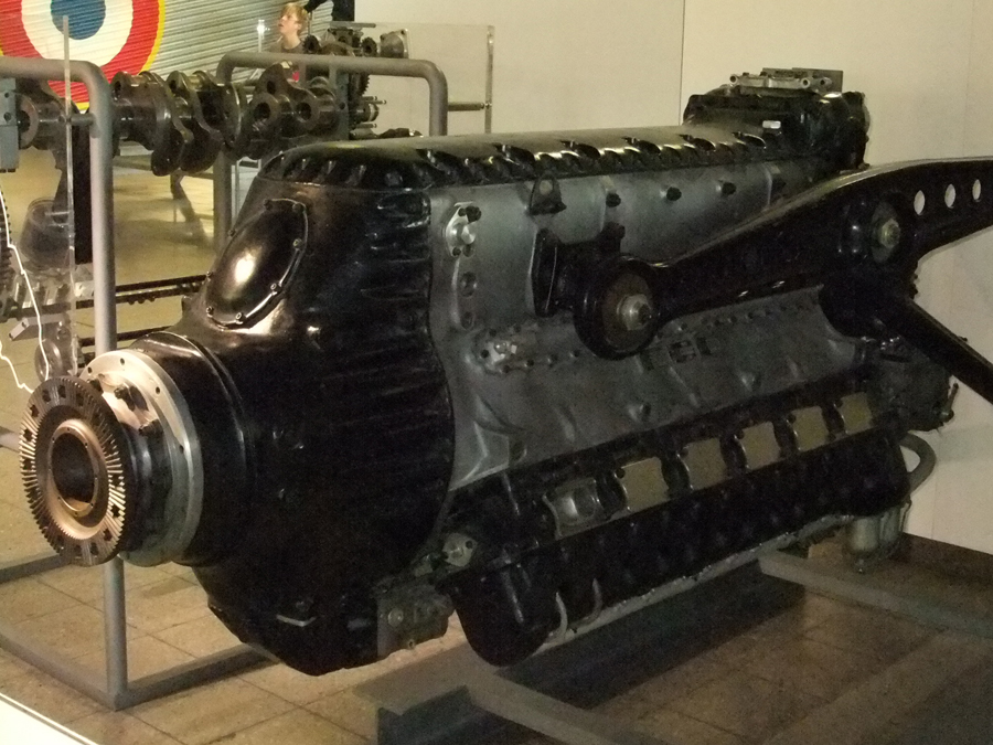 Luftgekühlter 12-Zylinder Hochleistungs-V-Motor mit hängenden Zylindern. In Frankreich als 12S von