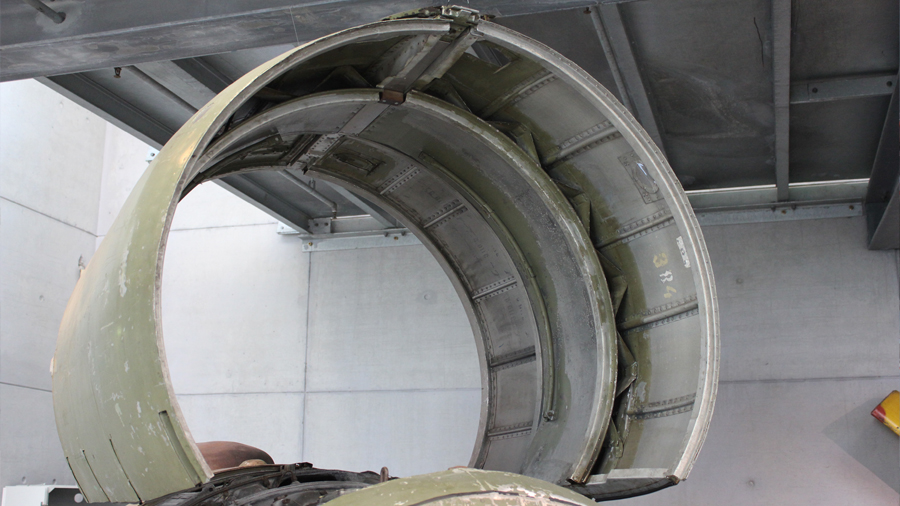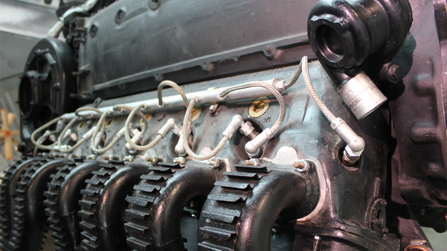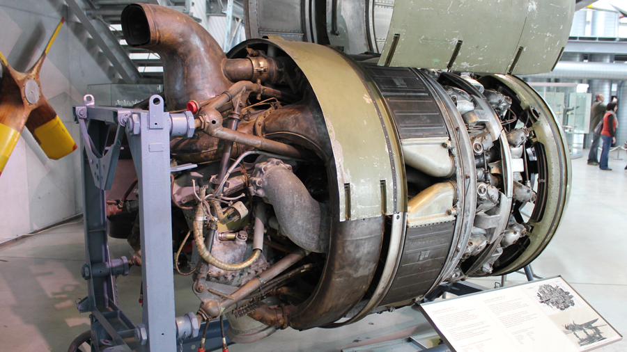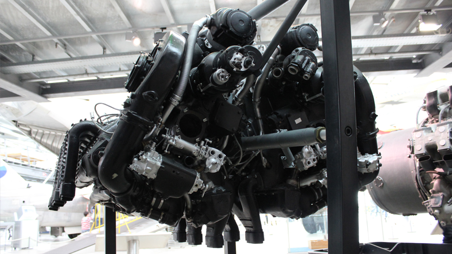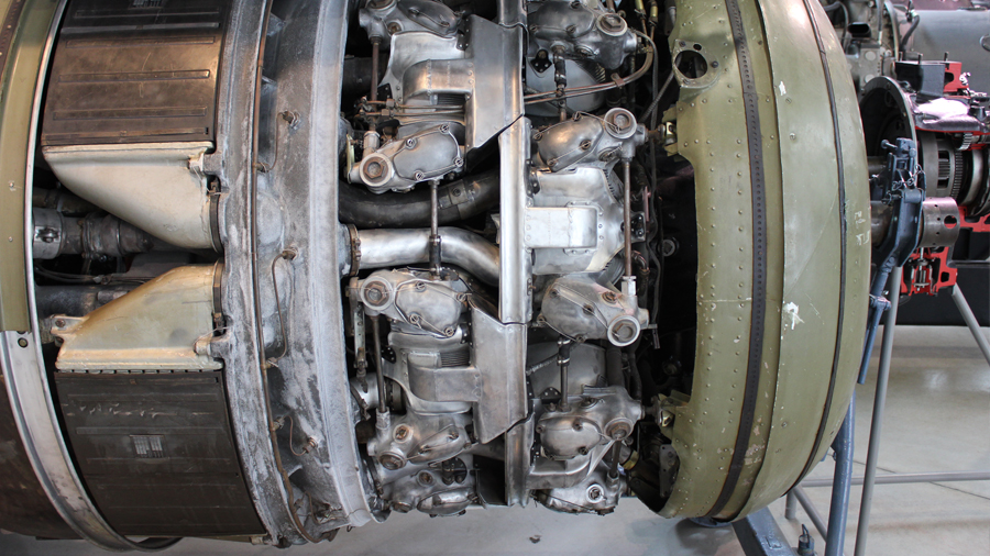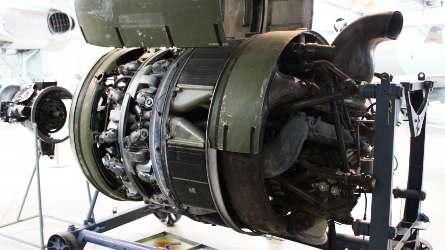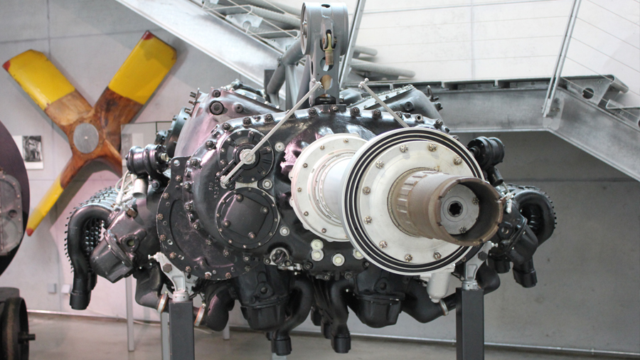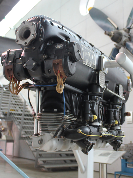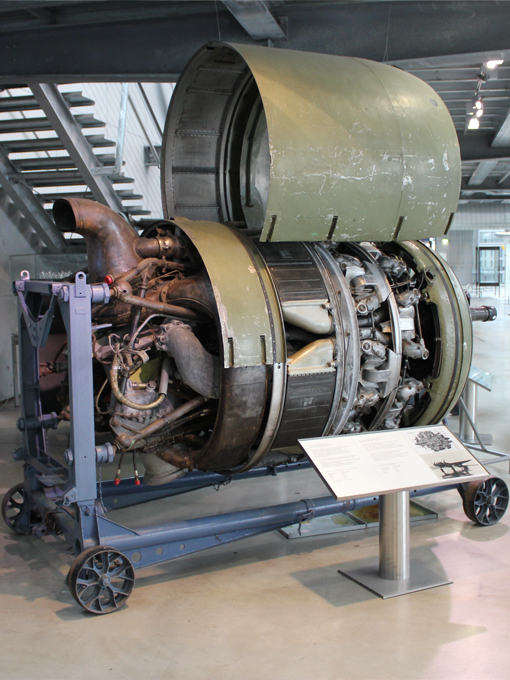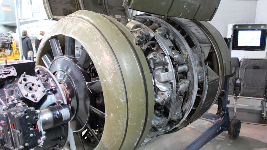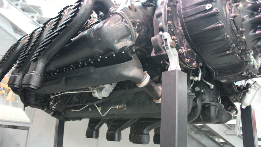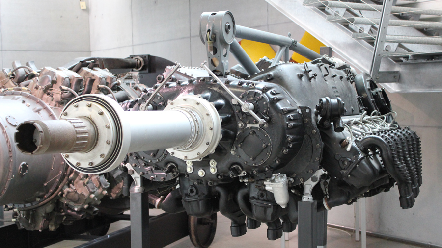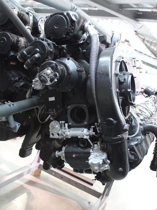 Die ausgestellte Baureihe TJ, deren Besonderheit der Turbolader ist, war für das zweimotorige Aufklärungsflugzeug
