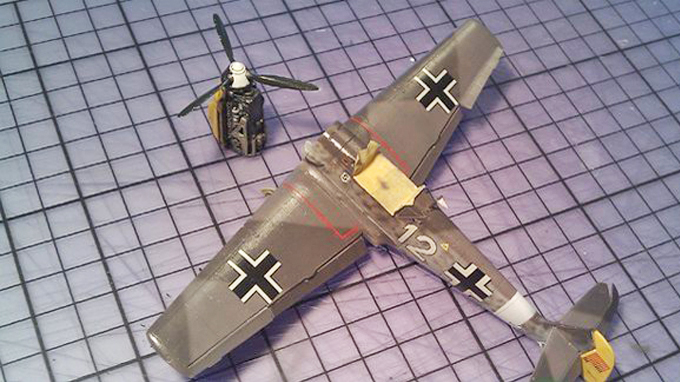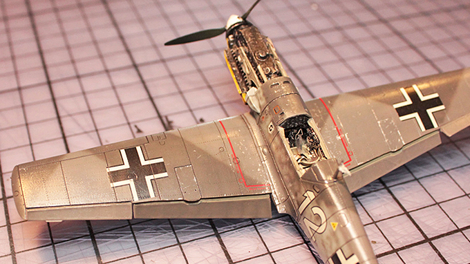 Zuletzt noch Abgasstreifen in Schwarz (so matt wie möglich) aufsprühen. Teilweise sind bei der Me 109 auch unter den